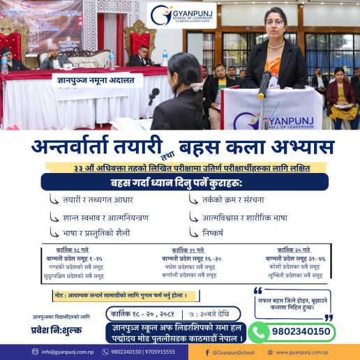 Location: Gyanpunj School Of Leadership, Putalisadak, Kathmandu